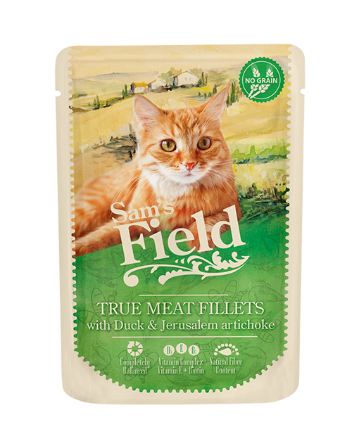 Besleme kılavuzu: Oda sıcaklığında servis yapın. Sam's Field pouchlar tam gıda olarak servis edilebilir. Kuru mama ile karıştırırken her birinin günlük miktarını buna göre azaltın. Kedinizin her zaman taze içme suyuna erişimi olduğundan emin olun.